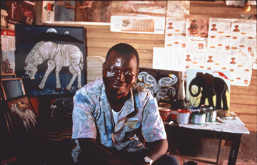 タンザニア生まれ。ティンガティンガ派の創始者である兄、E.S.ティンガティンガから直接絵画の手ほどきを受けた、第2世代にあたる。自由な色彩とモチーフ、不思議な色づかいと愛らしい表情で描かれる動物たち。ムパタという画家が描いた絵画には、一度目にしたら忘れることのできない強烈なインパクトと共に、見る人たちの心に笑顔を宿らせる、そんな不思議な力を持っており、アンディー・ウォーホールやキース・ヘリングといった現代アメリカ・ポップ・アートの巨匠たちからも高い評価を受けた。